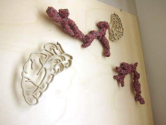 details of the four walls, various materials: ceramics, copper, zinc, bronze, textile and porcelain