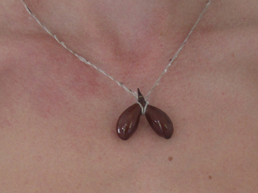 ketting, zeewier en epoxy, kraal 4 x 4 x 1,5 cm