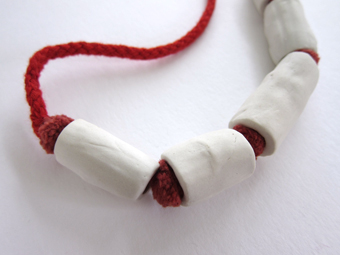 ketting, porselein en wol lengte 32 cm