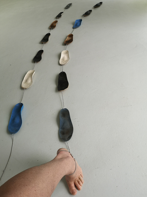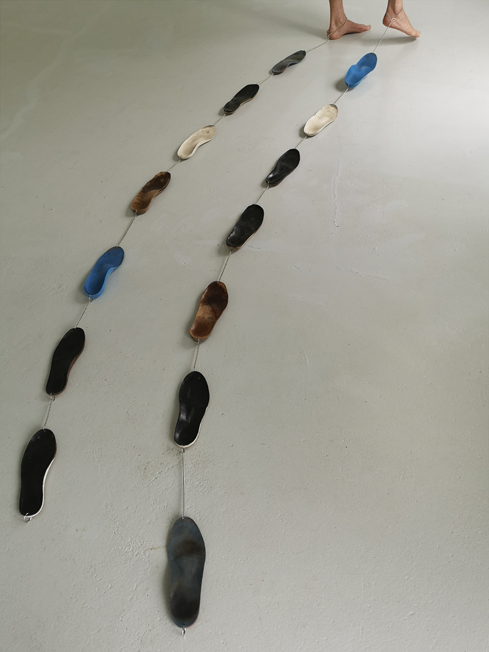 2020 footprint, plastic, leather and metal 4,5 x 350 x 50 cm