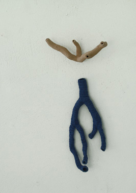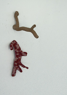 2009 celleno, keramiek en haakwerk 34 x 5 x 17 cm.