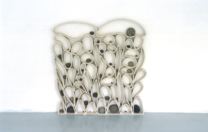 2001 selfdefence, keramiek en steen 95 x 87 x 5 cm.