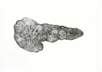 alvleesklier- hondsdraf en jacobskruiskruid, ets oplage 10 21,5 x 32 cm.
