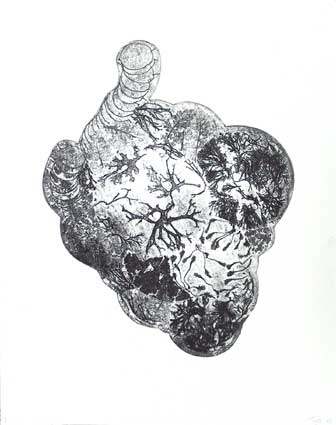 hart- diverse planten, ets oplage 10, 47 x 37 cm.