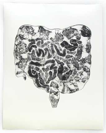 darmen- sinasappel, ets oplage 10, 47 x 37 cm.