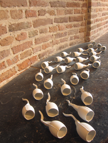 1994 in de maneschijn, keramiek, rechts 2003 een toost op de toekomst, porselein