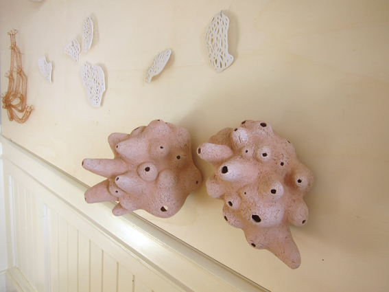 details van de vier wanden, diverse materialen: keramiek, koper, zink, brons, textiel, porselein