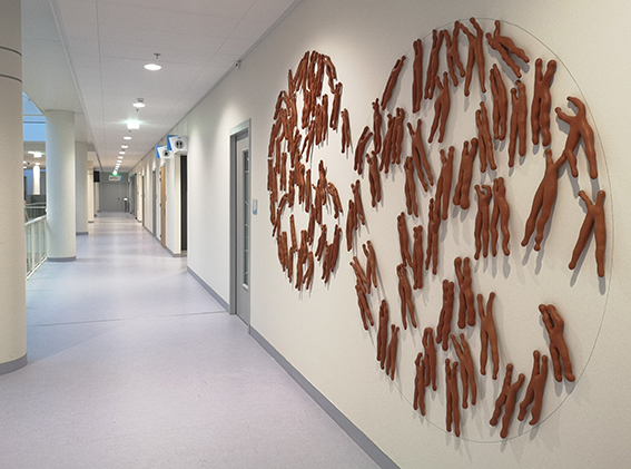 'mitose' keramiek 220 x 380 x 7 cm. Het intieme moment van celdeling wanneer alle basisgegevens via het DNA worden uitgewisseld. naar de website van Rijnstate