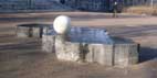 materiaal: granitto-beton 7600 kilo Het land- zwart gepolijst met matte ruw gehakte zijkanten, waarin schelpenlagen verwerkt zijn. De bol- melkwit met stukjes parelmoer.