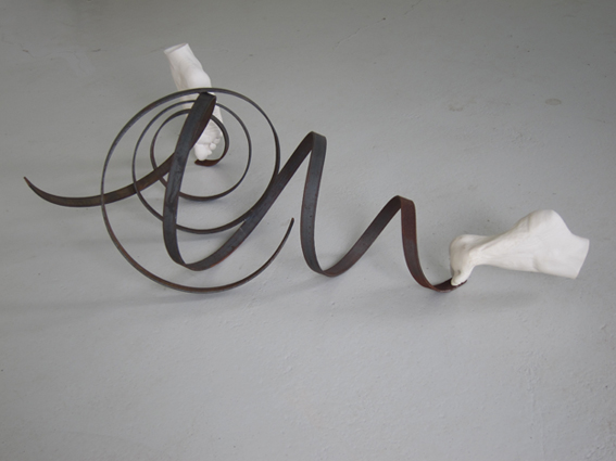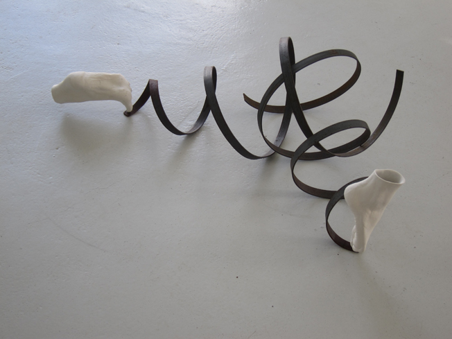 voorbijgaand, 2017/18 staal, porselein 28 x 87 x 75 cm