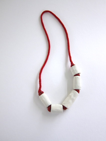 ketting, porselein en wol lengte 32 cm