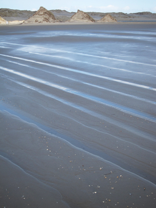 rimpels. Overhellend zand dat verbrokkelt en op zijn adem weer bijeen